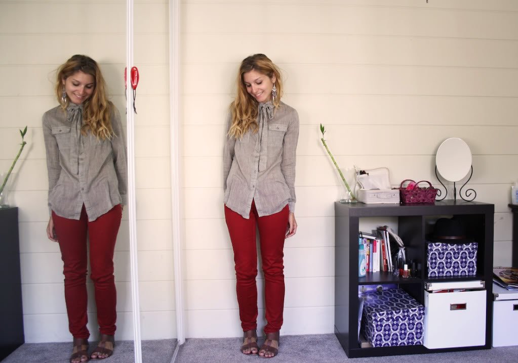 Ca te va très bien ! D’ailleurs je suis en ce moment fan de cette couleur bordeaux, lie de vin et ça ajoute tout de suite un petit quelque chose à la tenue ! Aller tu tiens le bon bout !